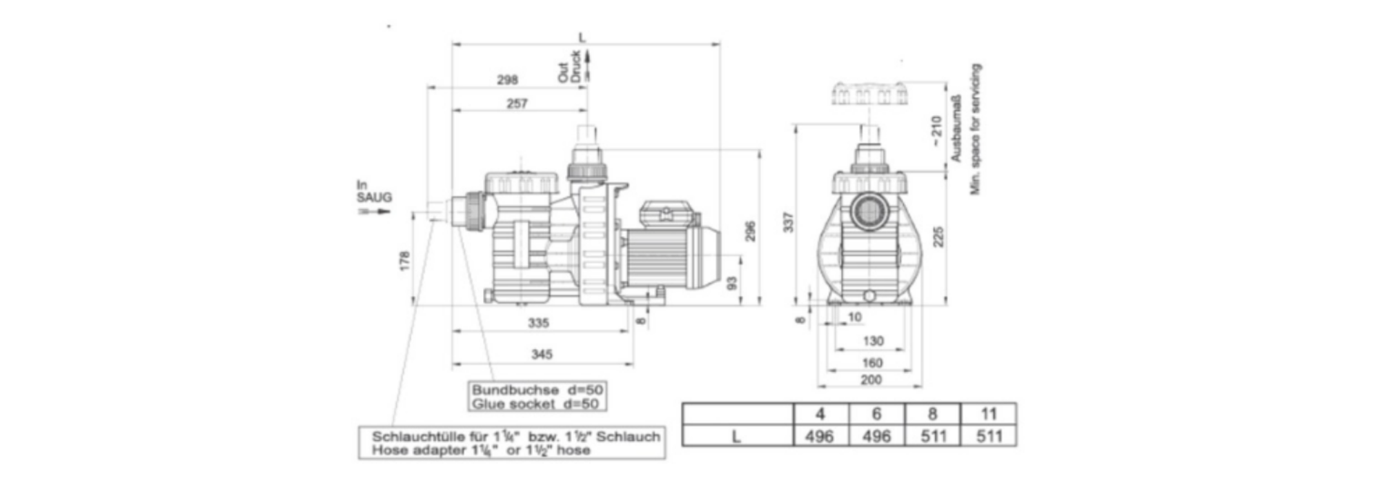 ปั๊มแบบล่อน้ำเองได้ ซึ่งเป็นปั๊มอเนกประสงค์สำหรับสระว่ายน้ำและบ่อปลา ด้วยการออกแบบที่ล้ำสมัยทำให้การเปลี่ยนปั๊มเป็นเรื่องง่ายและประหยัดเวลา อีกทั้งยังทำงานได้อย่างราบรื่น และผลิตจากวัสดุที่สึกหรอน้อย